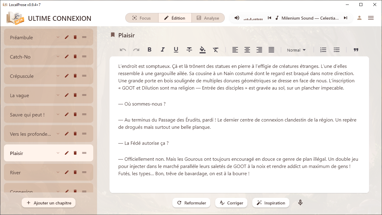 Les systèmes à crédits IA nous poussent à économiser nos pensées, à calculer chaque demande. LocalProse supprime cette barrière : c'est VOTRE machine qui travaille, l'usage de l'IA est illimité.