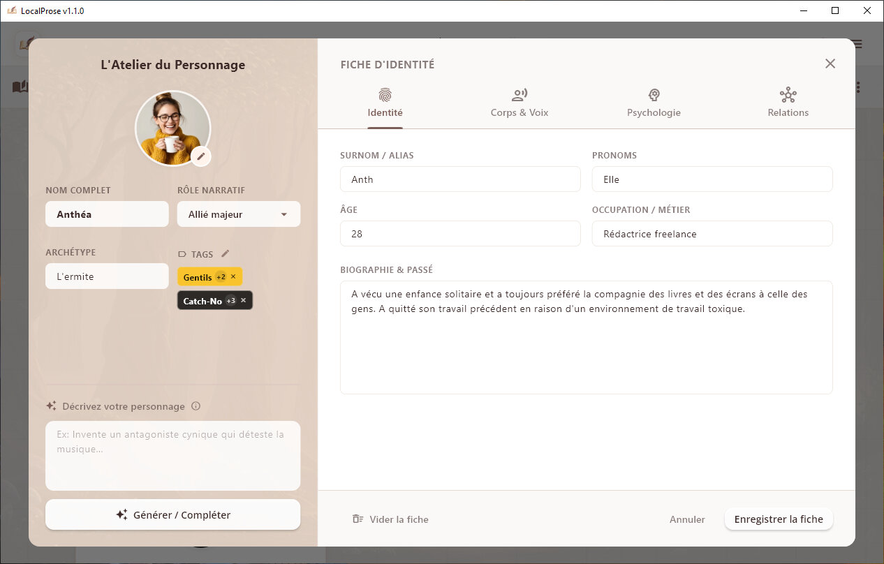 Rejoignez le QG des auteurs augmentés sur notre serveur Discord officiel. C'est l'endroit idéal pour obtenir du support technique en direct, proposer de nouvelles fonctionnalités et échanger des astuces avec d'autres écrivains. L'invitation est disponible ici : Rejoindre le Discord LocalProse.