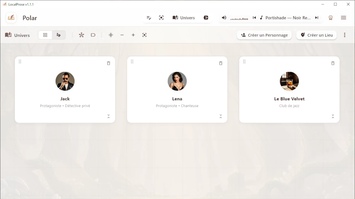 Avant de relier, il faut créer. Dans LocalProse, on parle d'« entité » pour un personnage ou un lieu.